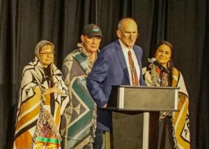 They received gifts of blankets and traditional medicine from the Native Student Professional Development Program after addressing the conference as outgoing TWS President Gordon Batcheller thanked them for their insights and echoed the importance of salmon restoration for Indigenous cultures and the ecosystem.