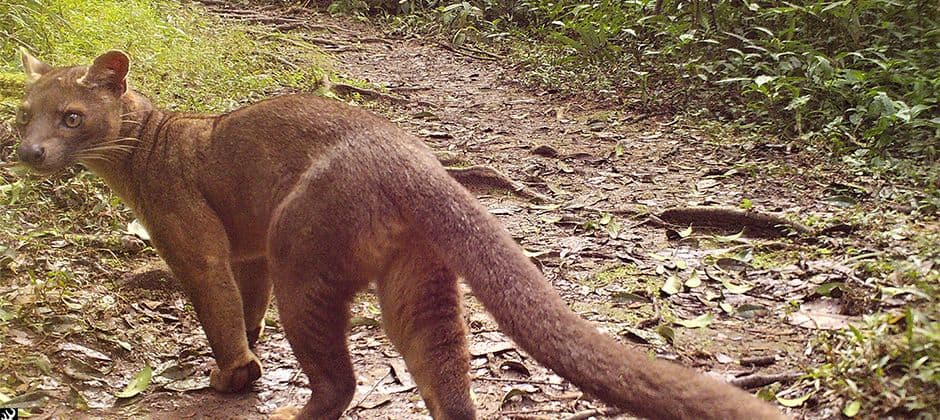 The team ended up sampling photos from 78 trail cameras — two other cameras were stolen. After analyzing their detections, the researchers found that different species saw different effects. Falanouc and fanaloka were negatively affected by dogs and cats. Fosa, however, saw more impacts from the forest edge.
