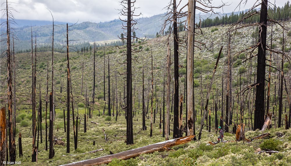 “The black-backed woodpecker is an indicator species for the health of recently burned forests,” Stillman said. “I know that sounds like an oxymoron, but a burned forest is a fragile ecosystem – it’s a valuable habitat on a trajectory to be restored into a forest with live trees once again.”