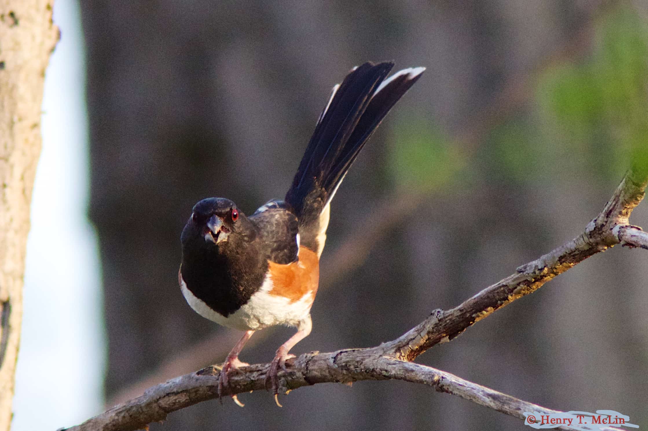 The results showed that fruit-eating birds, in general, were less abundant in areas where there were more of the invasive fruit flies. But out of the six species they examined, eastern towhee declines had the strongest correlation to fruit fly abundance. The researchers think that species may have driven the trend Roche and his colleagues saw for all fruit-eating birds.