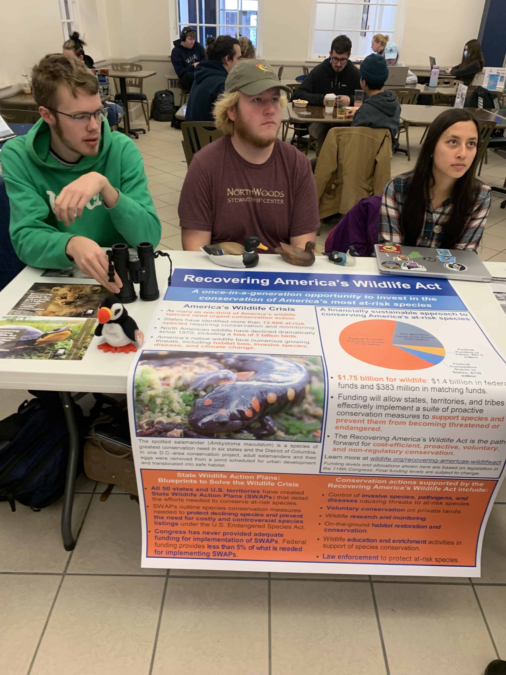 Organization for the event began in November 2022. Interested students met virtually with a goal of producing an informative event for other UMaine students and staff to learn about the Recovering America’s Wildlife Act. The hope was to inform and inspire others to help get the landmark conservation legislation passed.