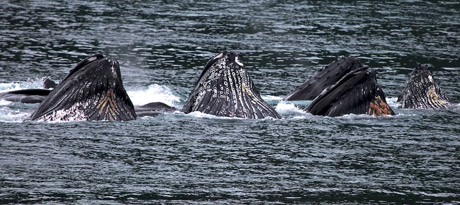 Drones and special underwater cameras fitted onto humpback whales have captured dual-perspective shots of the marine mammals feeding using a bubble-net strategy off the coast of southeast Alaska. Bubble-net feeding is a strategy humpback whales (Megaptera novaeangliae) use in which they swim in large circles while emitting bubbles to corral a school of fish into a tightly packed ball. Once the circle is complete, and the fish feel trapped, the whales lunge up from beneath the circle with their mouths open, swallowing a giant wad of tightly packed fish. Researchers received the footage using drones to capture the bird’s eye view and underwater cameras attached to the whales using suction cups. Data tags also logged the speed of the humpbacks during the maneuvers, according to a press release, helping researchers learn more about whale feeding strategies as they investigate a possible decline in the population.