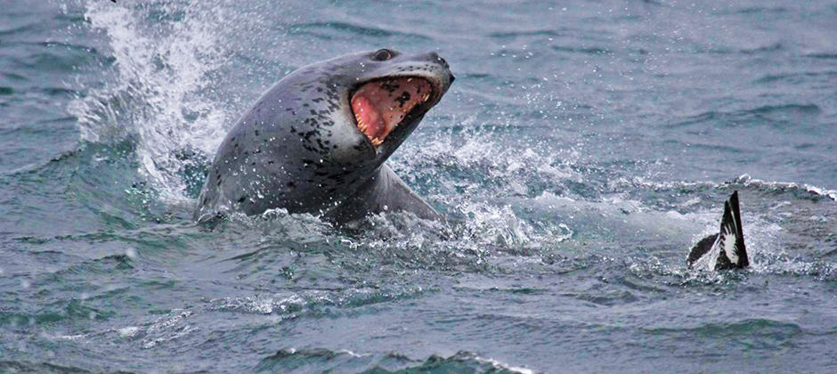 New drone footage has shown leopard seals joining the ranks of other marine mammals like dolphins and whales in their ability to work cooperatively to take down prey. The video captured leopard seals (Hydrurga leptonyx) feeding together on king penguins (Aptenodytes patagonicus) in the waters off South Georgia, an island east of the southern tip of South America. The footage surprised researchers since leopard seals are often territorial, chasing each other away from food and attempting to steal meals, according to the authors of a study published recently in Polar Biology. While it may just be a case of tolerating each other around a particularly abundant food source of large king penguin, the clawless seals also could be acting cooperatively, with one holding the penguin carcass in its teeth while the other rips off a chunk.