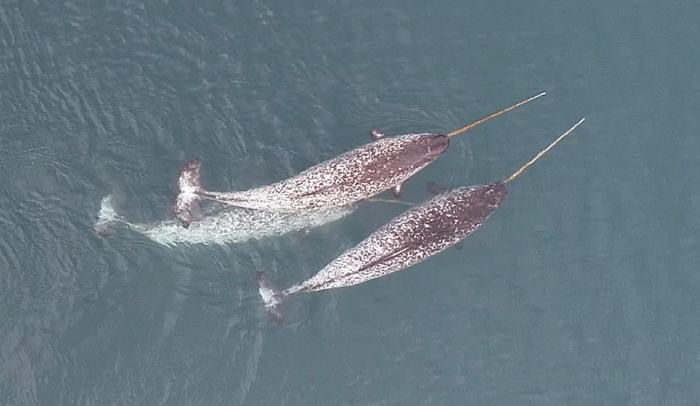 Tusks are one of narwhals’ defining features, but researchers have never been entirely clear about their function. Now, drones have revealed more about how the northern cetaceans use these large appendages that are actually overgrown teeth. New footage analyzed in a study published in Frontiers in Marine Science shows narwhals (Monodon monoceros) using these unicorn-like horns to herd, guide, stun and perhaps even kill their arctic char (Salvelinus alpinus) prey. Scientists had previously observed narwhals raising their tusks out of the water in tandem, something that may represent some sort of competition between males for mates. But researchers haven’t well documented them using their tusks to manipulate the behavior of prey. “I have been studying narwhals for over a decade and have always marveled at their tusks,” said Cortney Watt, a co-author of the study and team lead at Fisheries and Oceans, Canada, in a press release. “To observe them using their tusks for foraging and play is remarkable. This unique study, where we set up a remote field camp and spent time filming narwhals with drones, is yielding many interesting insights and is providing a bird’s-eye view of their behavior that we have never seen before.”