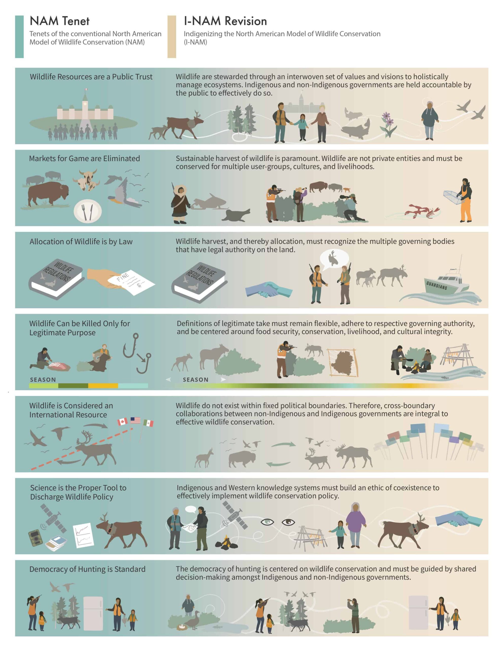 For example, while the North American Model describes wildlife as a public trust, it does not mention how Indigenous governments are included in that relationship, Hessami said. “This exclusion is problematic,” he said, “because Indigenous people have been managing and stewarding wildlife for thousands of years. Indigenous peoples’ intergenerational knowledge and growing political power to enact bold conservation policies are invaluable.”
