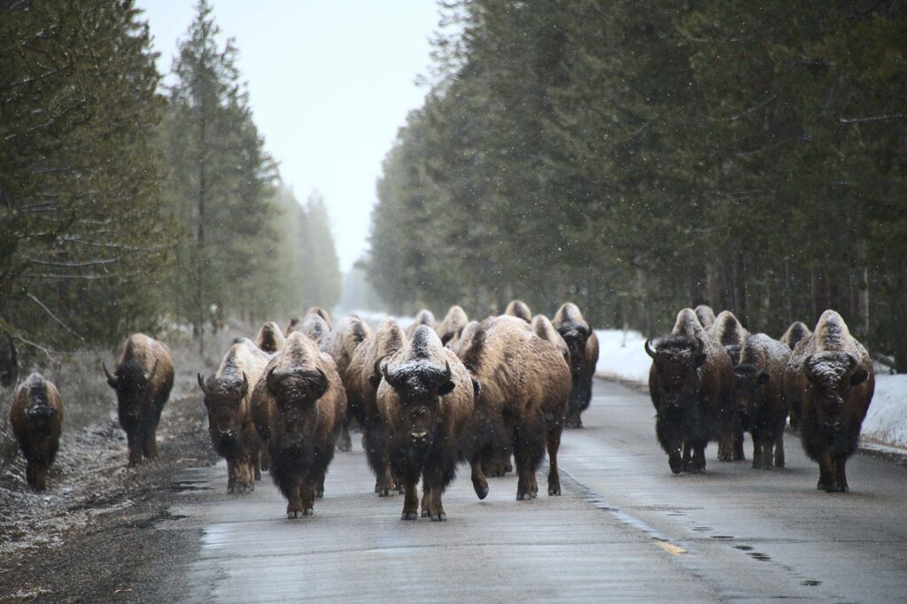 Wildlife managers could use this information to improve safety for both drivers and plains bison, especially when the large ungulates leave the park for calving grounds in the spring.