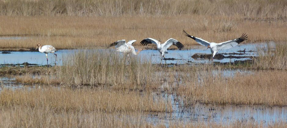 For the first time in over a century, endangered whooping cranes are nesting in Texas. Two pairs of the birds recently began laying eggs on private land in Jefferson and Chambers counties, east of Houston. The cranes were part of a nonmigratory population that had been introduced in Louisiana. “We are excited to see this reintroduction effort show continued signs of success, with nesting now occurring in Texas,” said Amy Lueders, the Southwest regional director for the U.S. Fish and Wildlife Service. The USFWS recently signed an agreement with the Natural Resources Conservation Service that provides regulatory protections and conservation assistance to landowners who host whooping cranes.