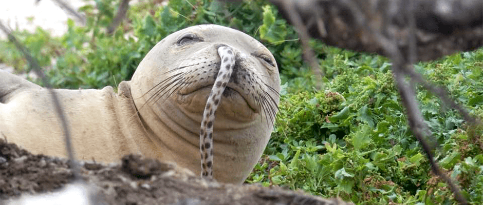 It has stumped scientists, and it must be pretty disconcerting to the involved parties, too. On a few occasions, biologists in the Hawaiian Islands have come across an odd phenomenon: endangered monk seals (Monachus schauinslandi) with eels stuck in their noses. “We have no idea why this is suddenly happening,” Charles Littnan, lead scientist of the National Oceanic and Atmospheric Administration’s Hawaiian Monk Seal Research Program, told the Washington Post. “You see some very strange things if you watch nature long enough, and this could end up being one of these little oddities and mysteries of our careers that 40 years from now, we’ll be retired and still questioning quite how this happened.” An image posted by the team on Facebook has attracted more than 2,000 views. Littnan said he first became aware of it happening about two years ago when a colleague asked what the protocol was to deal with such an event. It’s happened three or four times since then, most recently this fall. In each case, the eels were removed and the seals were fine. The eels didn’t fare so well.