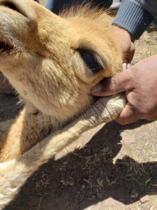 The research team found that community roundups of vicuñas and guanacos, called chaccus, provided the best opportunities to manage mange. When the animals are rounded up for shearing, community members can monitor animals for mange, dosing affected animals with ivermectin by rubbing it into the skin in affected areas. Some communities do this, either dosing all of the gathered animals or those that appear affected.