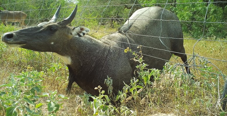 Nilgai aren’t easily contained, though. Their bulky bodies can push through fences, leaving behind openings that other wildlife use to cross from one property to another.