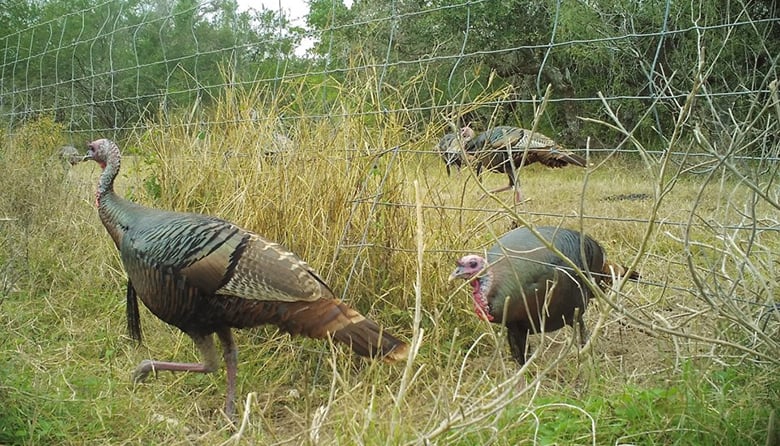While the gaps in the fences can create headaches for ranchers by allowing cattle to escape, they may provide a benefit to native wildlife. Granger’s camera traps show native species like wild turkeys (Meleagris gallopavo) use these crossings to get around.