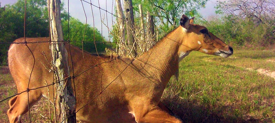 Nilgai aren’t easily contained, though. Their bulky bodies can push through fences, leaving behind openings that other wildlife use to cross from one property to another.