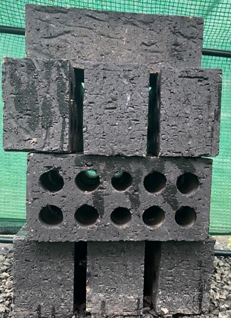 As described in a study published recently in Nature, Waddle and his colleagues built the sauna using a kind of greenhouse setup with masonry brick walls inside. Instead of placing the bricks the way they are usually stacked, they laid them on their sides so that the holes inside faced outward, as seen above. These small holes in this type of brick were the perfect size for adult green and golden bell frogs.