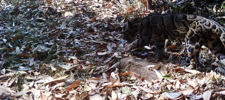 Trail cameras also showed other species associated with evergreen forests, such as pig-tailed macaques, Asiatic golden cats (Catopuma temminckii), and clouded leopards (Neofelis nebulosa), pictured above. Proximity to villages and other human presence negatively affected all of these species.