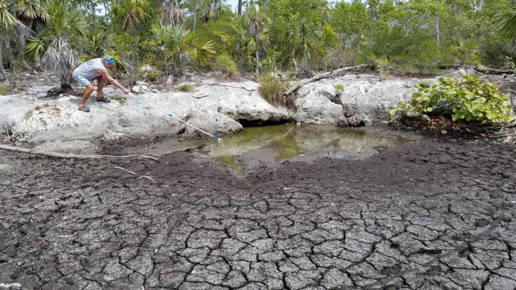 Decades earlier, a graduate student had mapped 294 watering holes in the Keys. But a closer examination revealed that many of these either dried up for most of the year, like the one pictured above, or became too salty to drink from. Further, hurricanes like Irma can lead to storm surge and sea level rise that can increase the salinity of freshwater sources.