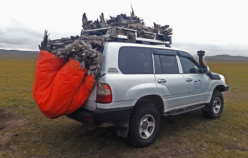The saker is one of the few falcon species classified as globally endangered by the International Union for the Conservation of Nature. The birds’ habitat is threatened by development, but Mongolia has a relatively large population of the birds. Not all of them breed, however, since there aren’t enough suitable locations to nest.