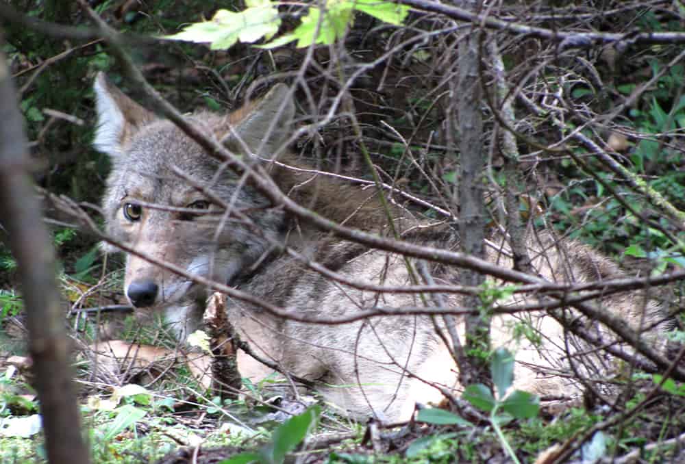 There are no gray wolves (Canis lupus) in this area, but the coyotes are larger than usual, and sometimes even hunt in packs, taking down moose and the occasional caribou — both calves and adults. Bears and coyotes typically occupy younger forests where they are more likely to find moose, but they also catch caribou that stray from the mature forest.