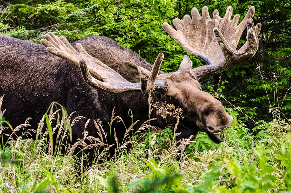 In the past 25 years, about half of the mature forest in the area had been removed, prompting moose (Alces alces) to move into higher elevations, giving the areas around Gaspésie some of the highest moose densities of Quebec. While moose aren’t necessarily a threat to caribou, the larger animals draw large predators — in high numbers given the availability of moose prey.