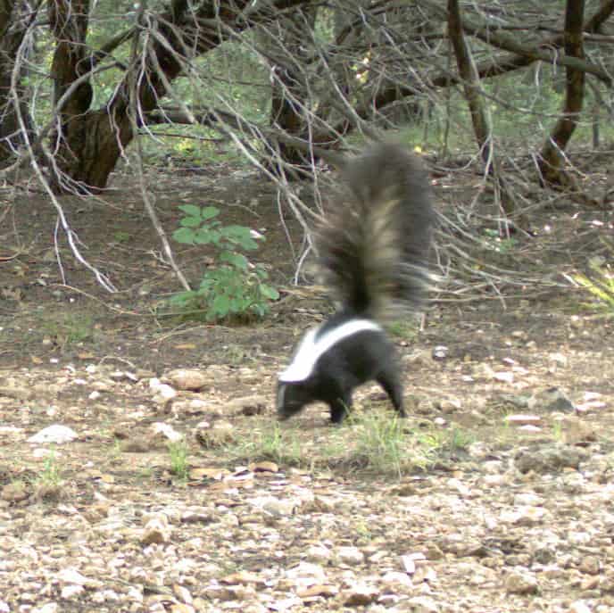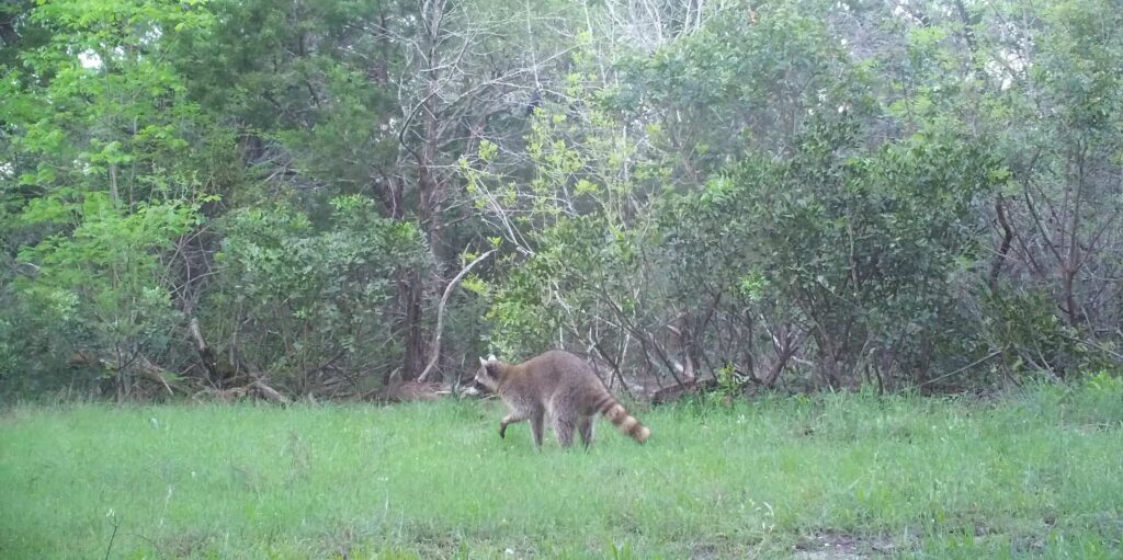Both sites had lots of coyotes, plus a mix of smaller carnivores—bobcats (Lynx rufus), gray foxes (Urocyon cinereoargenteus), raccoons (Procyon lotor) and striped skunks (Mephitis mephitis). Fort Hood also added eastern spotted skunks (Spilogale putorius) and ringtails (Bassariscus astutus) to the mix.