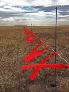 As they describe in a study published recently in Animal Conservation, the team electrified the fladry, and because coyotes are smaller than wolves, they narrowed the spacing of the flags. They took their system to the badlands of South Dakota and placed it around 8-hectare plots surrounding areas used by black-footed ferrets (Mustela nigripes). Coyotes prey on the ferrets, which are a federally endangered species.