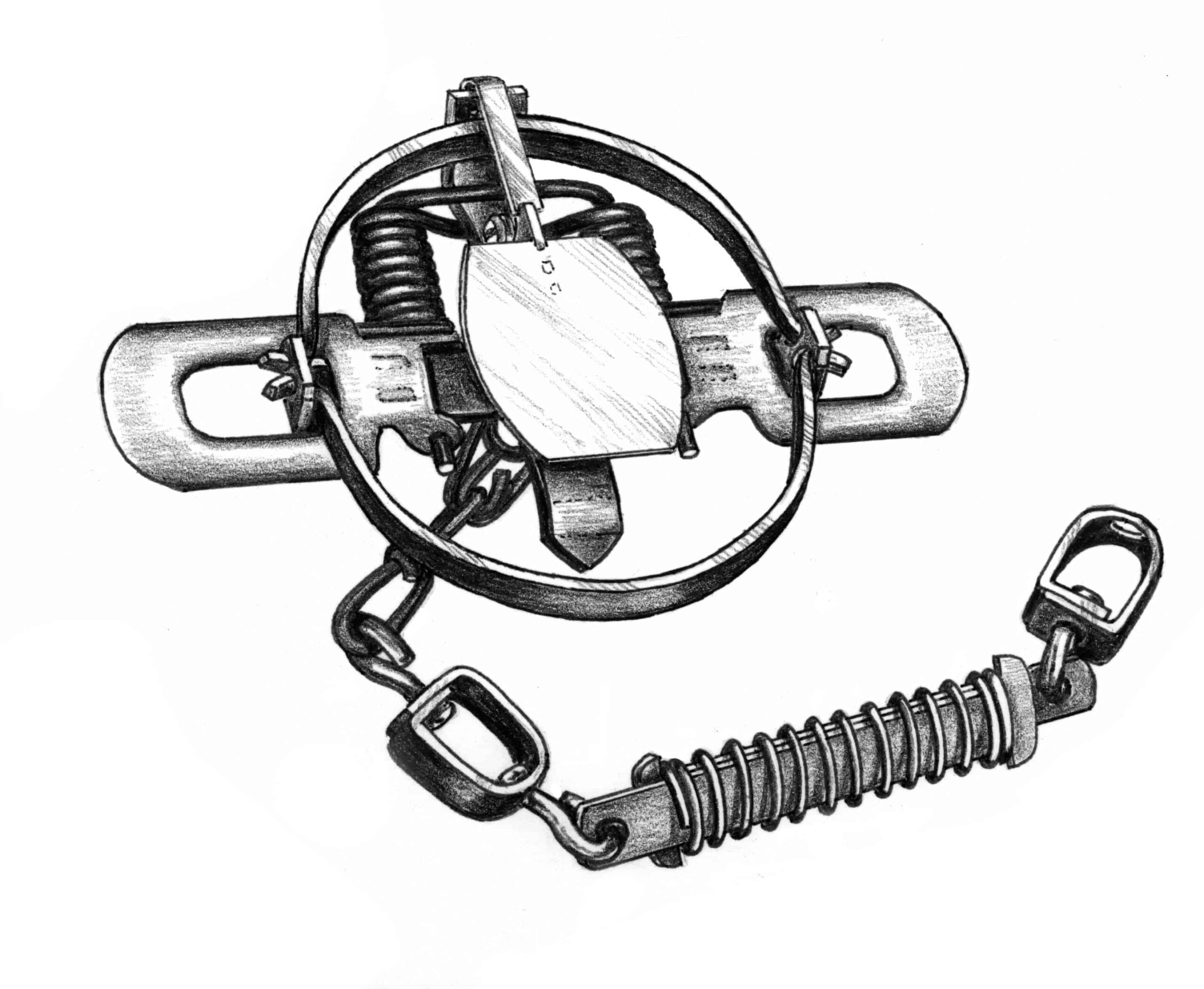 A standard coiled spring foothold trap. Courtesy Bryant White