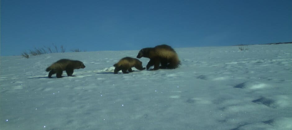 But after placing a trail camera at the mouth of the third, researchers captured photos of a wolverine family using it as a den.