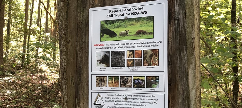 Feral swine are an invasive species that compete with wildlife for food resources and prey on turkey and quail nests, reptiles, amphibians and other wildlife, including threatened and endangered species. They are a serious threat to forest and wildlife resources in Illinois through competition with native wildlife for food and cover, destruction of habitat, and destruction of sensitive natural areas, according to the U.S. Forest Service.