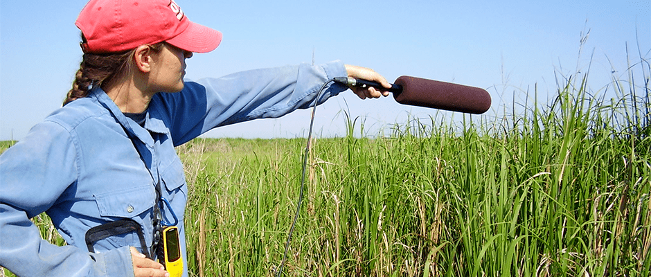 “We were sneaking as close as we could to marsh wrens, holding out our microphones and recording and dictating what they do,” she said. “It was hours and hours of standing very still in the marsh, listening, and getting bit by a lot of mosquitoes!”