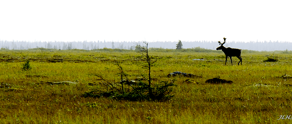 Header Image: A woodland caribou bull roams the coast at Wabusk Point on Ontario’s Hudson Bay. ©J.H.