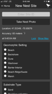 After finding a nest during their routine monitoring work, users pulled out their phones to take a photo, capture the geolocation coordinates and record the date and time. Then they completed a simple habitat assessment. Was the nest on a beach? On a dune? In a marsh? Was it on sand? On gravel? Near shrubs? By a parking lot?