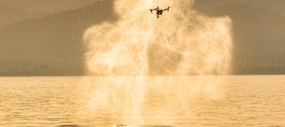 Just at the right moment, the whale exhales, blowing a mixture of seawater, mucus and other material well past 12 feet in the air. The drone swoops in, collecting the droplets of liquid in special petri dishes attached to the side using Velcro. Mission accomplished. The drone heads back to the researchers controlling it in the boat.