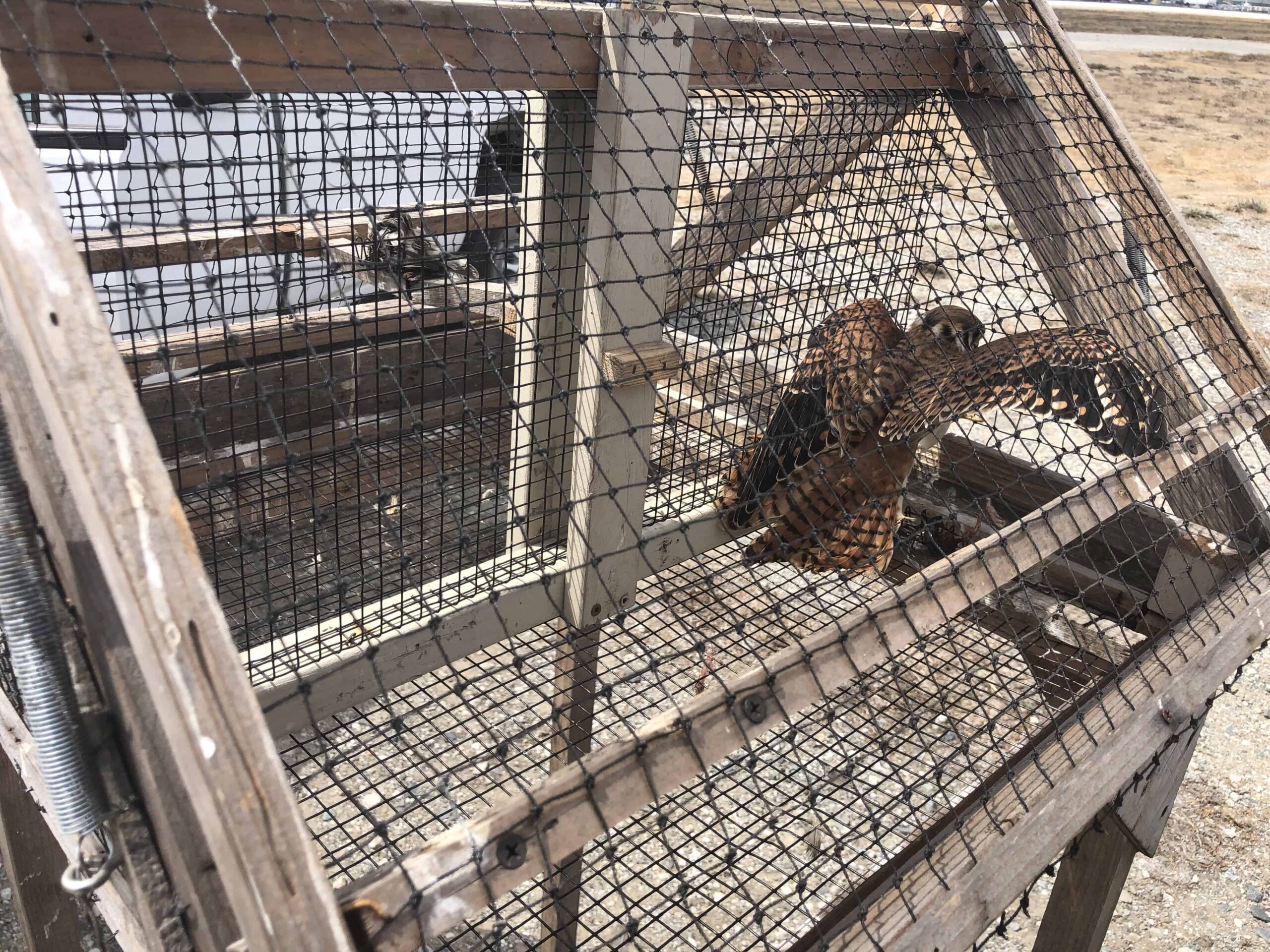 Managers translocated kestrels up to 60 miles away from airports. This one was captured in a Swedish goshawk trap in the Los Angeles International Airport. Credit: USDA Wildlife Services